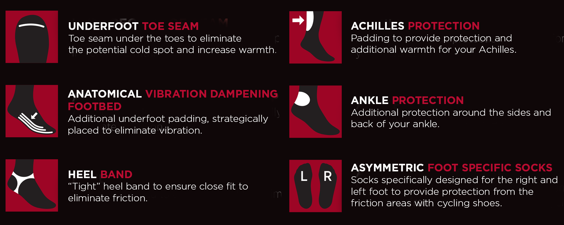 - Warmth – Precise non-slip Fit – Underfoot Vibration – Achilles Protection – Ankle Protection–Asymmetrical Left and Right Foot protection.