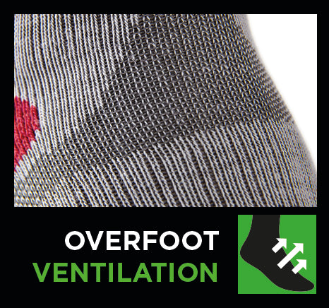 Keeps the sock locked in position. During wear this reduces the possibility of bunching and rucking which could cause irritation or blisters.
