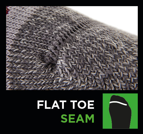 An almost invisible toe seam closes the toe box creating a comfortable, flat seam that doesn’t create excess bulk or cause irritation.